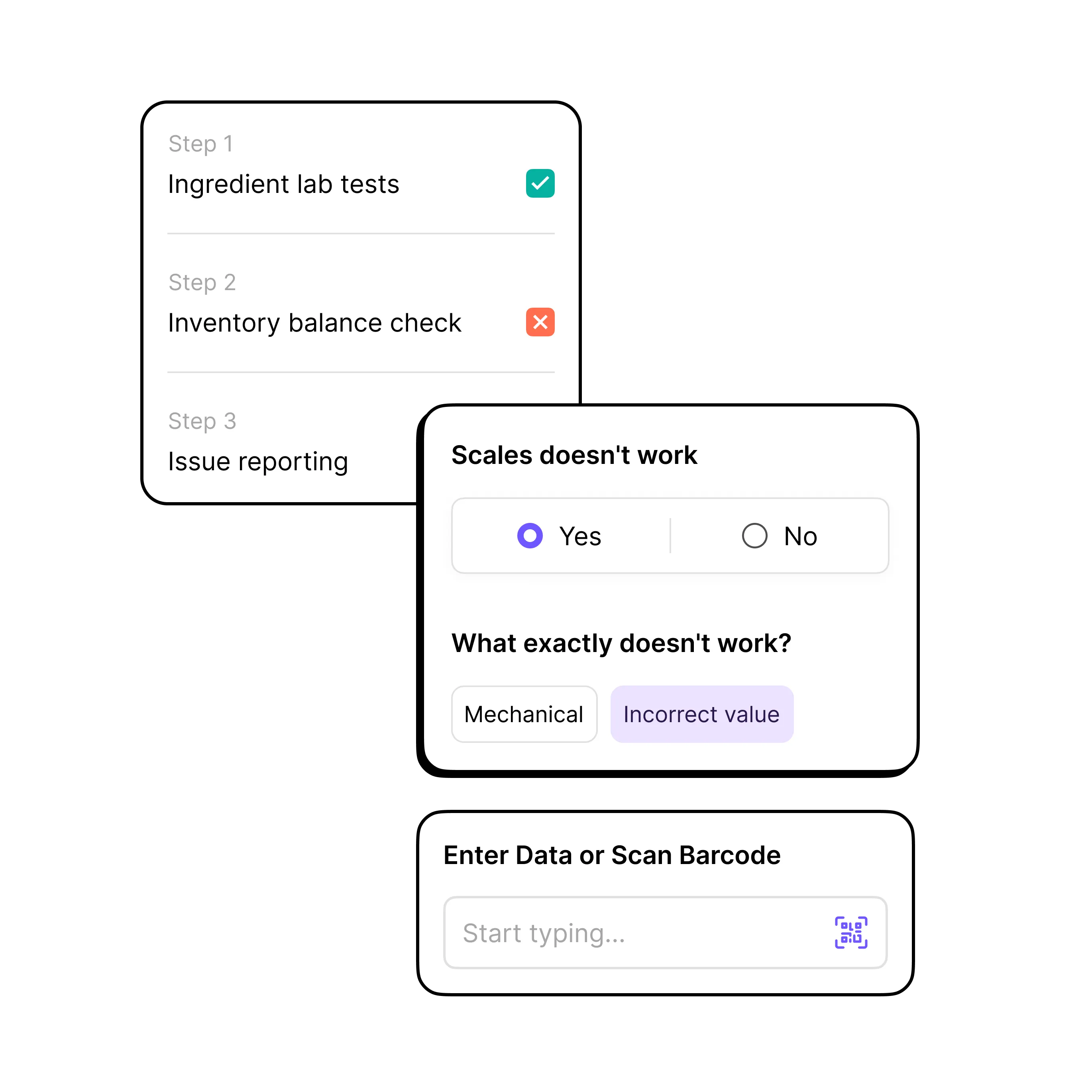 Raw material quantities registration